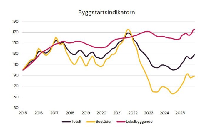 Prognoscentrets Byggstartsindikator visar nybyggnationen.